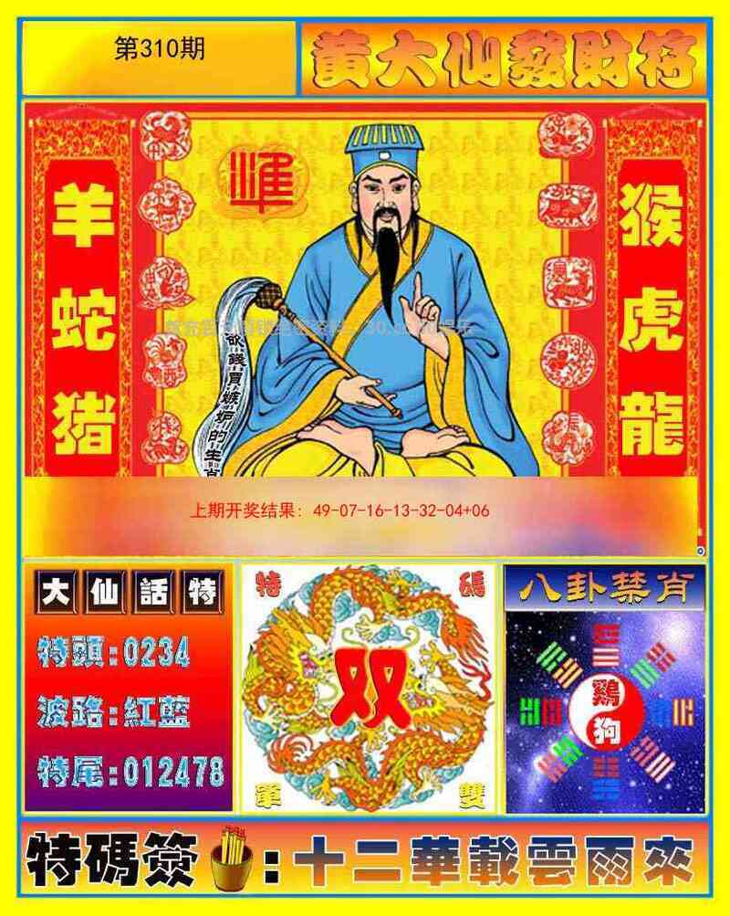313期:黄大仙心水/简单好下注/台湾玄机诗/港台澳七肖/必中人物